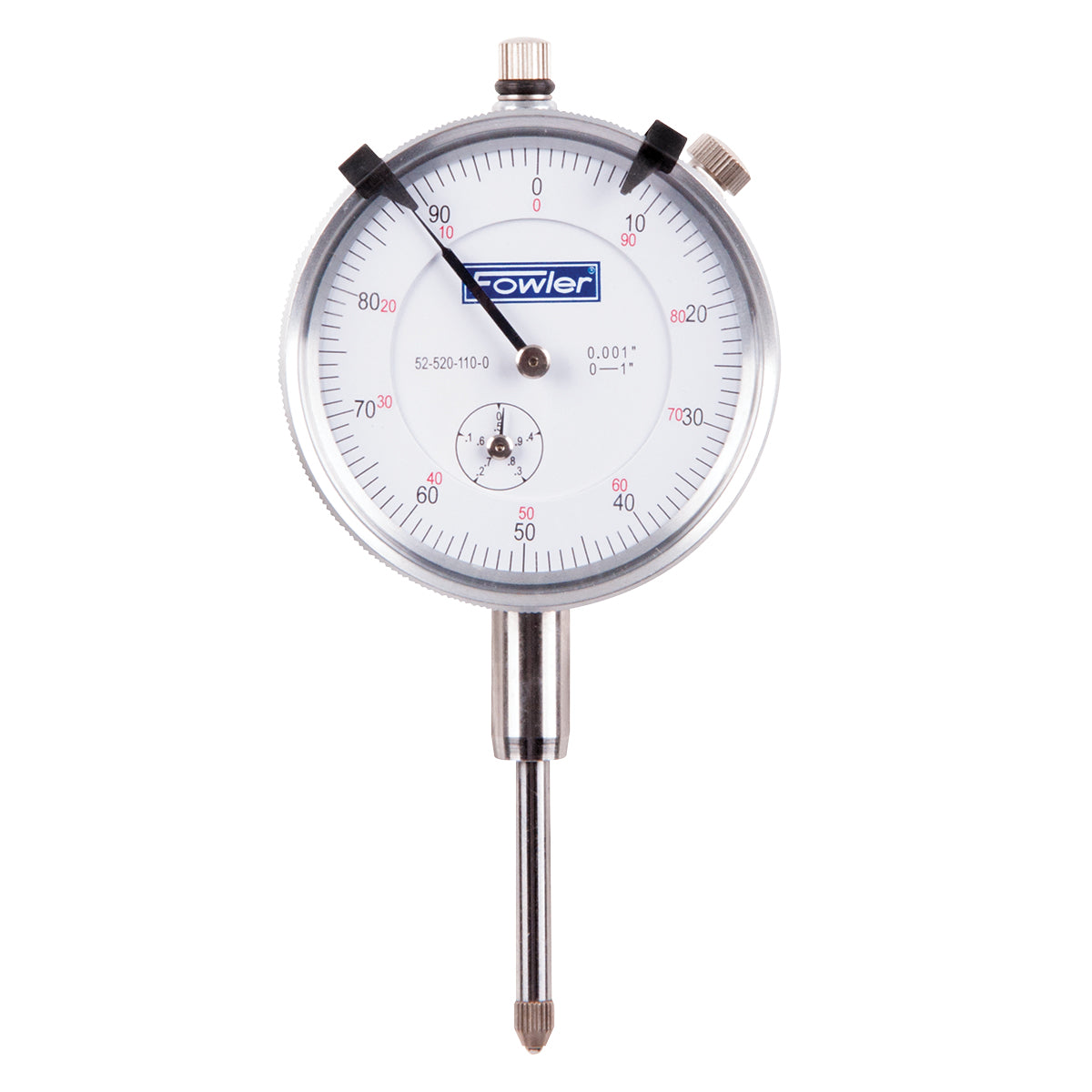 wear; cases forged brass, satin-chromed; gear wheels hard brass• Pinions of silver steel, hardened tempered and burnished on pivots; lapped on teeth• Microfine graduations in black for continuous readings and red for balanced readings• Available in metric graduations• Movement mounted independently from case on rigid supporting plate, ensuring perfect and permanent alignment• Extra long springs for uniform pressure through entire travel of spindle• Bezel knurled; easily adjusted thru 360°•
