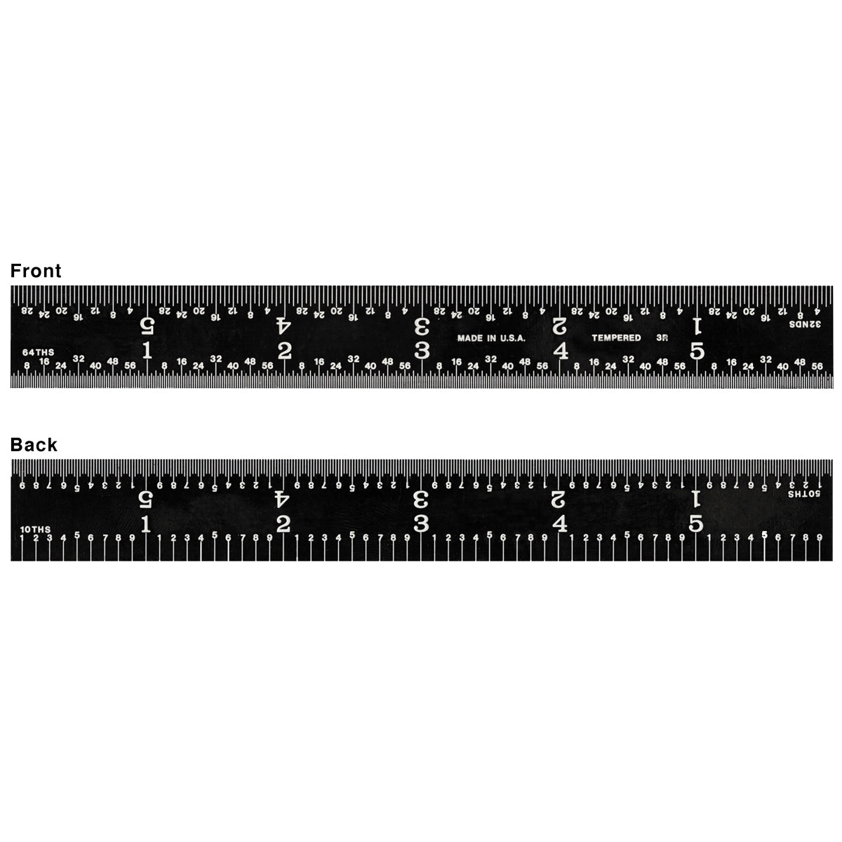Features:• EZ Read Rules are constructed of hardened stainless steel.• Etched, white numerals and graduations are easy to read against the non-glare, black finish.• 5R graduations are in 32nds, 64ths, 10ths & 50ths• Rigid rules are .035" thick