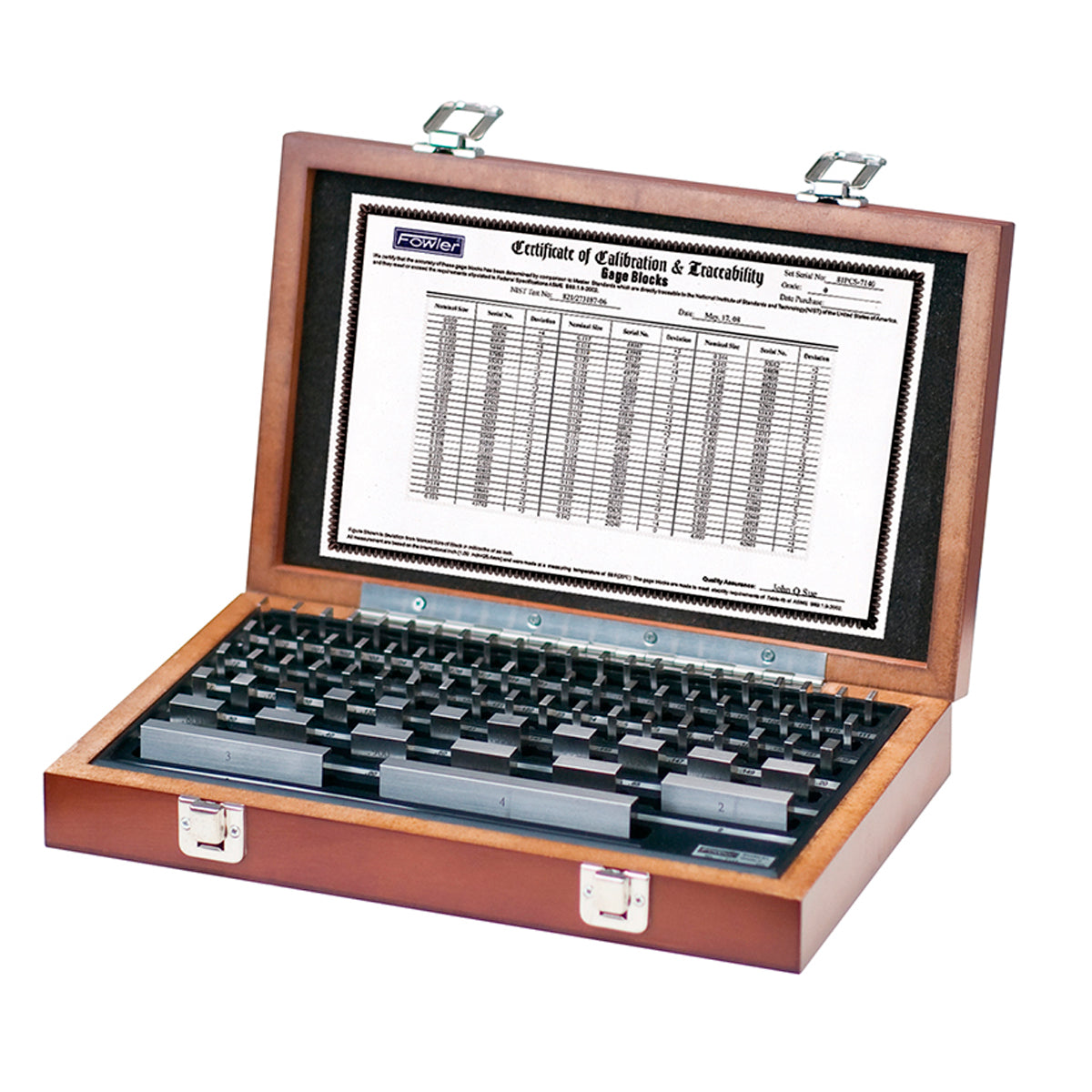 • Each set includes standard sizes found in more expensive sets.Each block individually serialized; conforms to rigid standards of the National Institute of Standards & Technology• Price includes fitted wood case