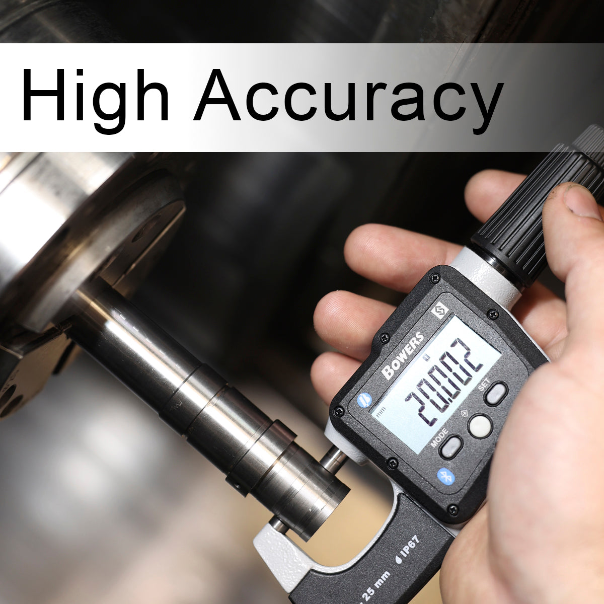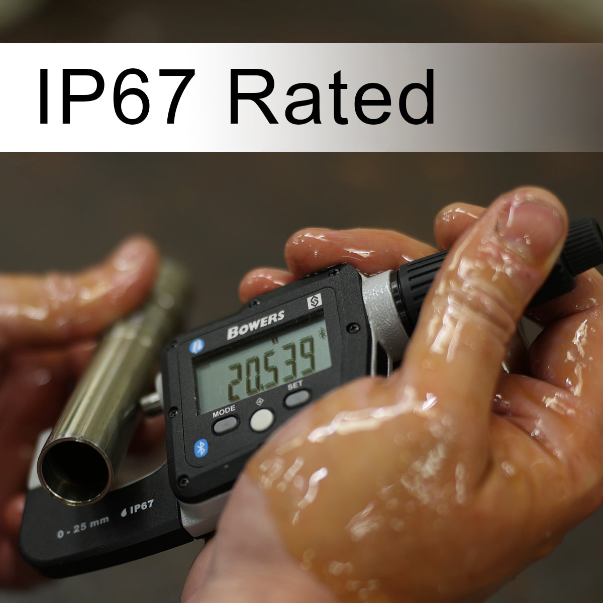 Features:• IP67 protected against fluid and dust• Very High Accuracy: 0.00008"/0.002mm (0-1"/25mm)• Bluetooth IOT ready, no dongle or cable required for SPC data collection• Resolution: 0.00005"/0.001mm