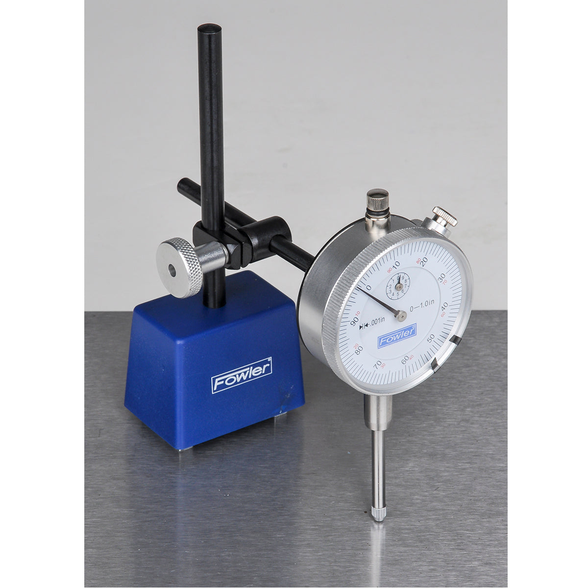 • Includes indicator which features 1" range; .001" graduations; reading: 0-100; 2-1/4" dial diameter and includes rod connector and holding clamp